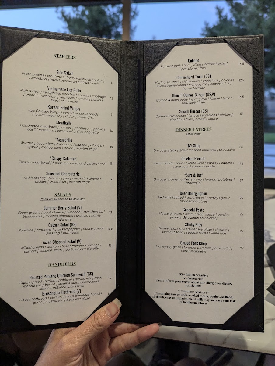 “ Checked out Arcadia on opening night! I went in with lower expectations for service. Especially on today’s service industry climate. I had the exact opposite! The staff was great! Super impressive for a grand opening. Our waitress Jada was awesome. She was very personal and social. I got a few of the speciality cocktails and they were great as well! The lychee martini was amazing! I do think there are a few small little things that will improve over time, but all in all I’m so excited for this to come to Polk City and can’t wait to go back and try more dishes and drinks! ”
